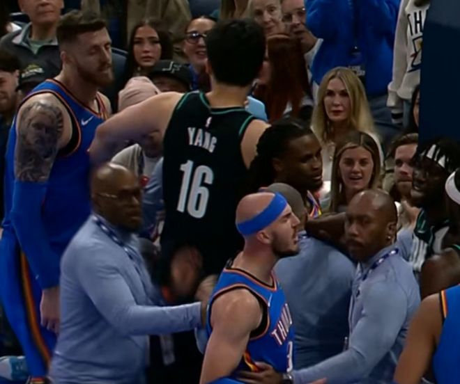 此外,在第二節前半段比賽,雙方一度爆發沖突,哈爾滕施泰因認為呂佩爾對米切爾的犯規動作過大,過去叫板與呂佩爾爆發沖突,楊瀚森在身后拉走發脾氣暴怒的哈爾滕施泰因,也是成功加入勸架之列阻止事態擴大。