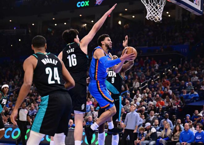 北京時間11月24日,當開拓者送給衛冕冠軍新賽季首敗,也是至今的唯一一敗。如今賽季二番戰開拓者客場慘遭聯盟第一的雷霆122-95吊打潰敗,但楊瀚森此役終于命中個人NBA生涯首記三分取得突破。楊瀚森本場替補17分12秒,貢獻11中3,其中三分6中1與罰球1中1,得到8分4籃板3助攻1搶斷1蓋帽數據,NBA生涯28分超越周琦24分,升至NBA中國球員總得分榜第5位。
